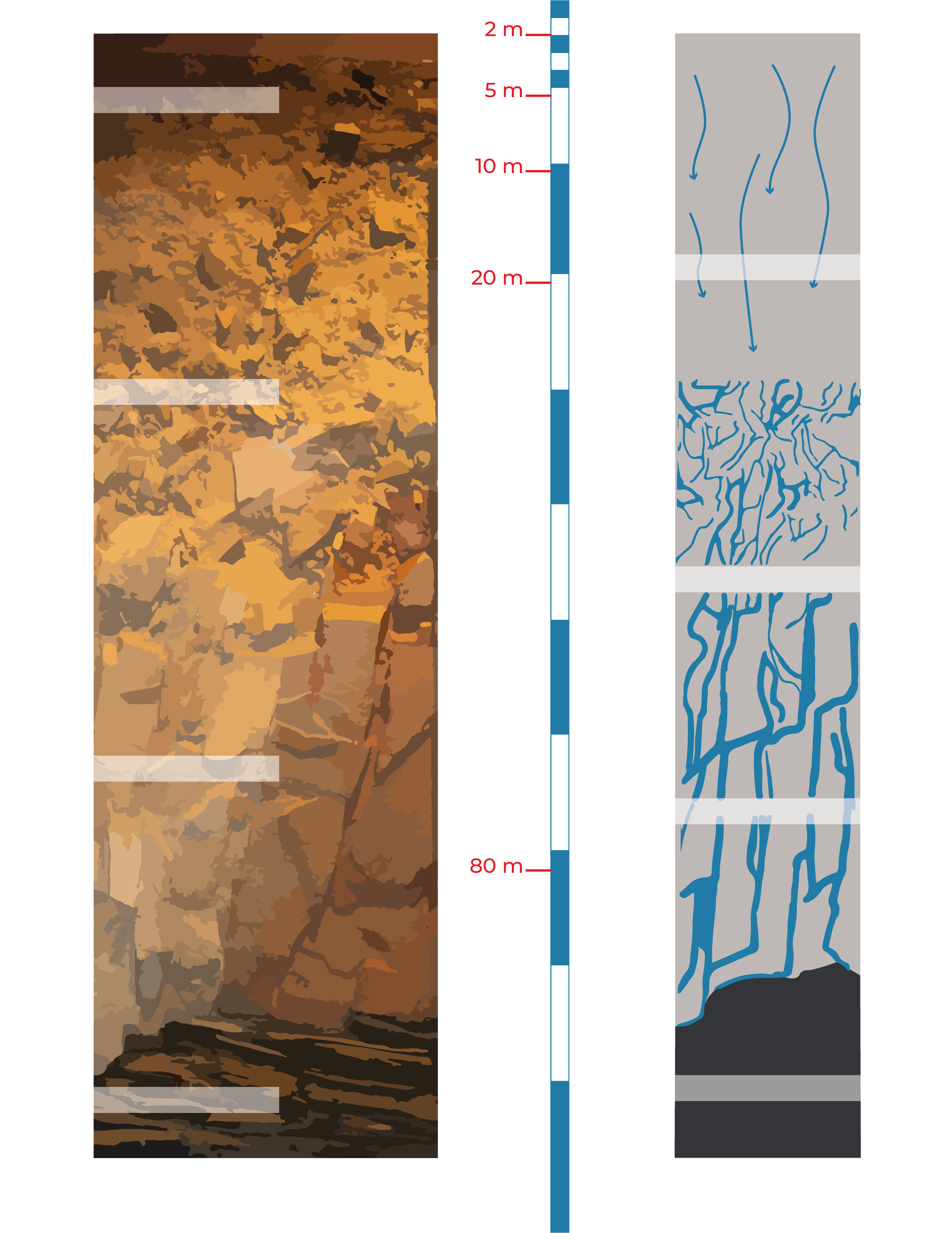 Auf seinem Weg durch die verschiedenen Gesteinsschichten wird das Wasser gefiltert und gereinigt. Es nimmt aber auch etwas auf: Mineralien, die sich aus den Gesteinsschichten lösen. Grundwasser ist sehr klares und sauberes Wasser!